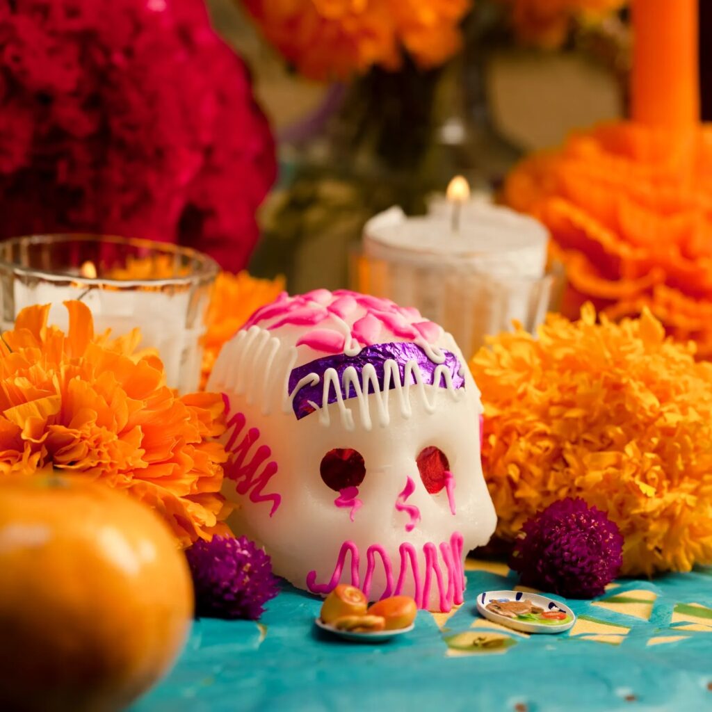 Las calaveritas de azúcar, por su parte, tienen su origen en el «tzompantli», altar utilizado en la antigüedad en el que se colocaban cráneos como recuerdo de los seres queridos que fallecían.