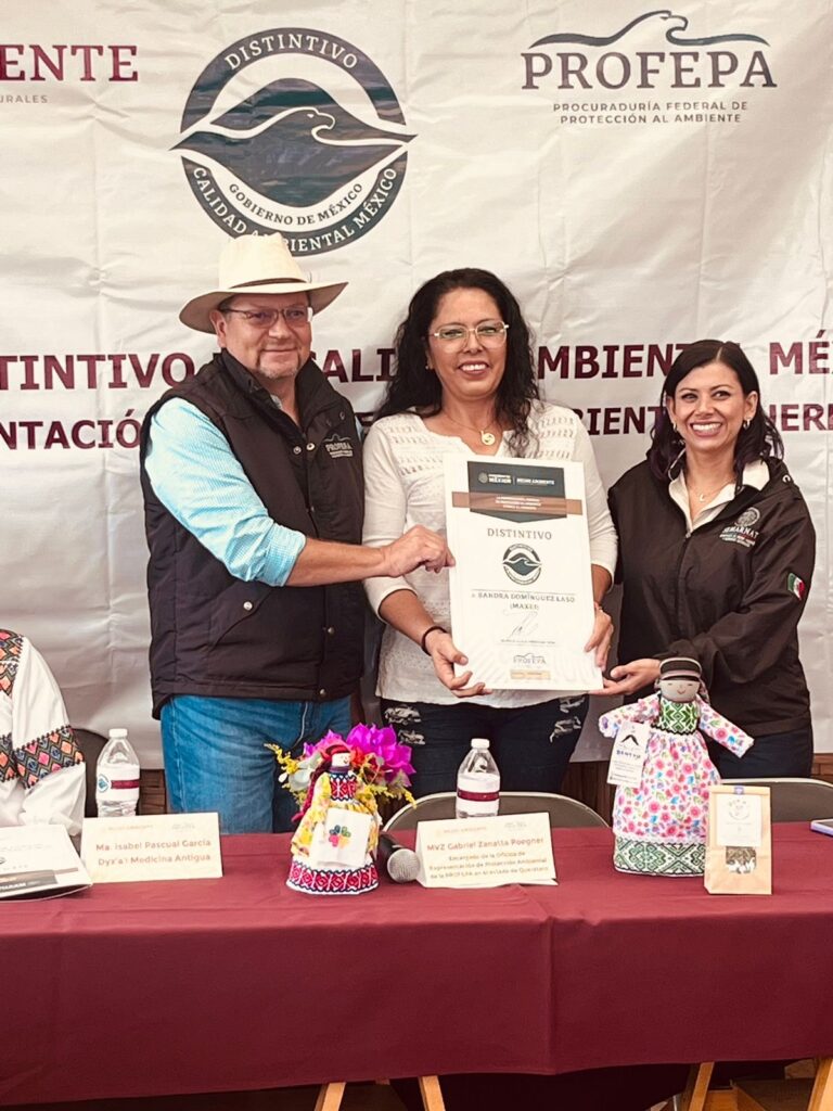 El proyecto de medicina tradicional Maxei de San Juan del Río, encabezado por Sandra Domínguez Laso, recibió uno de los cinco distintivos de calidad ambiental entregados a nivel estatal por la Procuraduría Federal de Protección al Ambiente (Profepa).