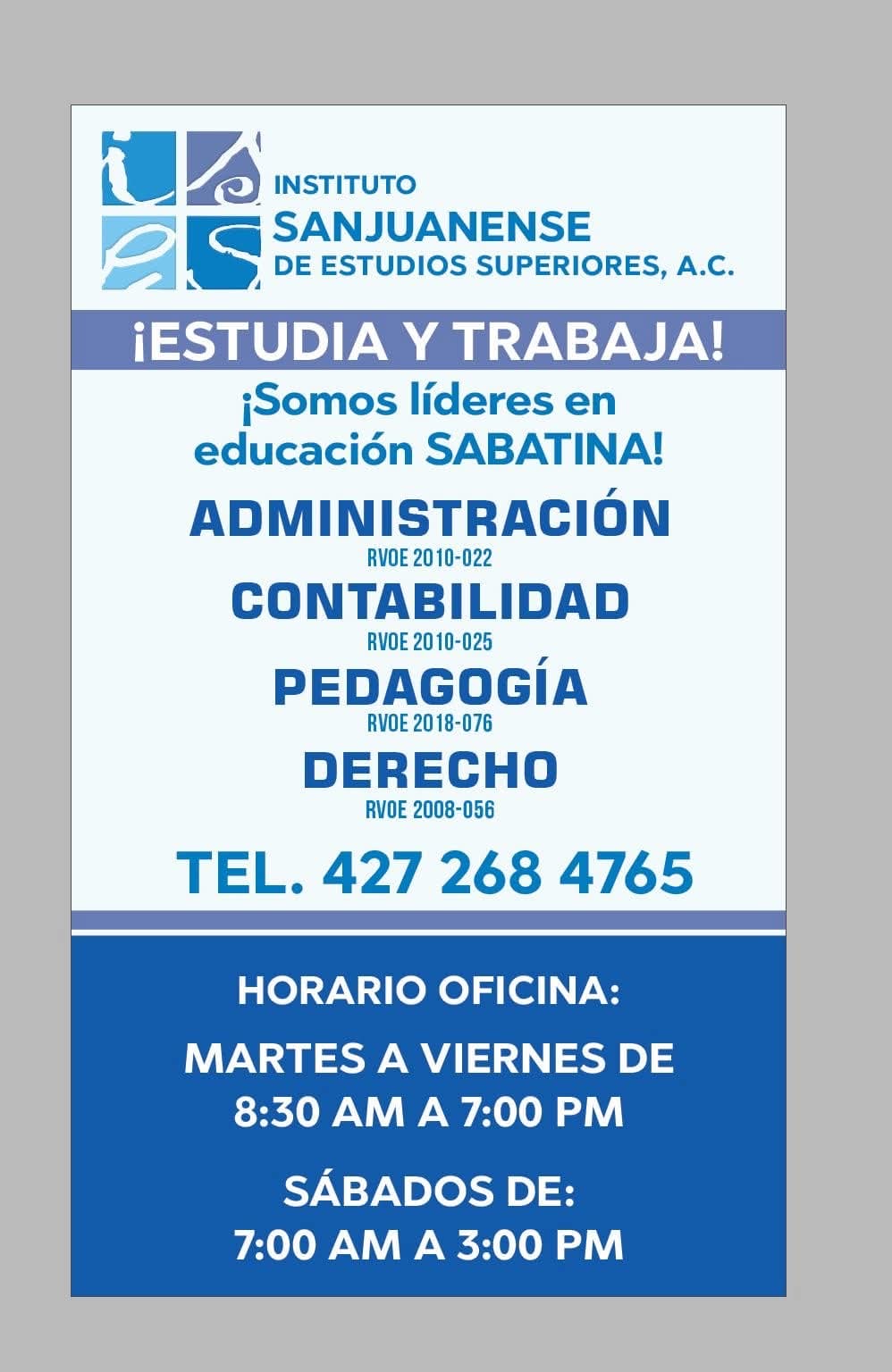 El Instituto Sanjuanense de Estudios Superiores A.C. reafirma su  compromiso con la excelencia académica, la transparencia y la formación integral de sus estudiantes. Son una institución con reconocido prestigio en San Juan del Río y la región, respaldada por los RVOES (Reconocimientos de Validez Oficial de Estudios) que garantizan la formalidad, solidez y calidad de los programas educativos que impartimos.